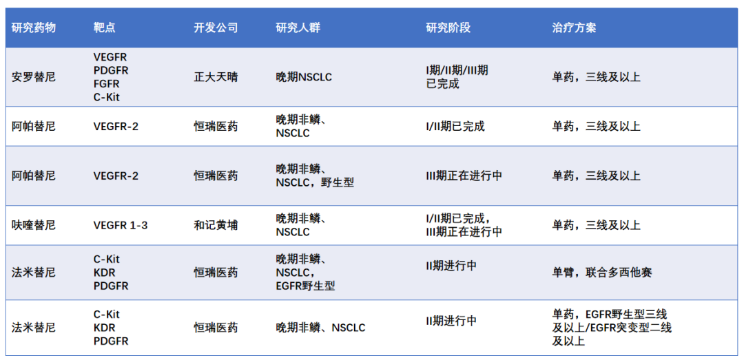 国内研发和上市的小分子抗血管生成TKI在NSCLC的研究