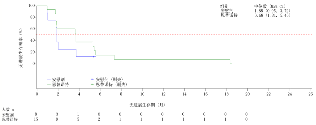 在安全性方面,恩替司他最常见的≥3级血液学不良反应包括中性粒细胞减少症(43.8%)、血小板减少症(8.5%)和白细胞减少症(6.4%),而最常见≥3级非血液学治疗相关不良反应(TRAE)为天门冬氨酸氨基转移酶升高(2.6%)。此外,恩替司他的平均消除半衰期长达61.9小时,1周1次的长间隔用药,能够大大减轻药物负担和提高治疗依从性。因此,无论从疗效还是安全性、用药便捷性等方面,恩替司他在同类药物临床试验中均表现非常出色。