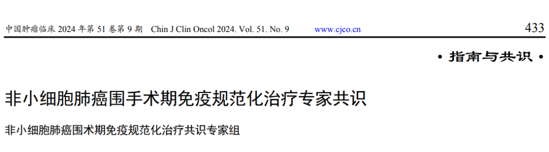 1.非小细胞肺癌围手术期免疫规范化治疗共识专家组.非小细胞肺癌围手术期免疫规范化治疗专家共识[J].中国肿瘤临床,2024,51(9):433-446.