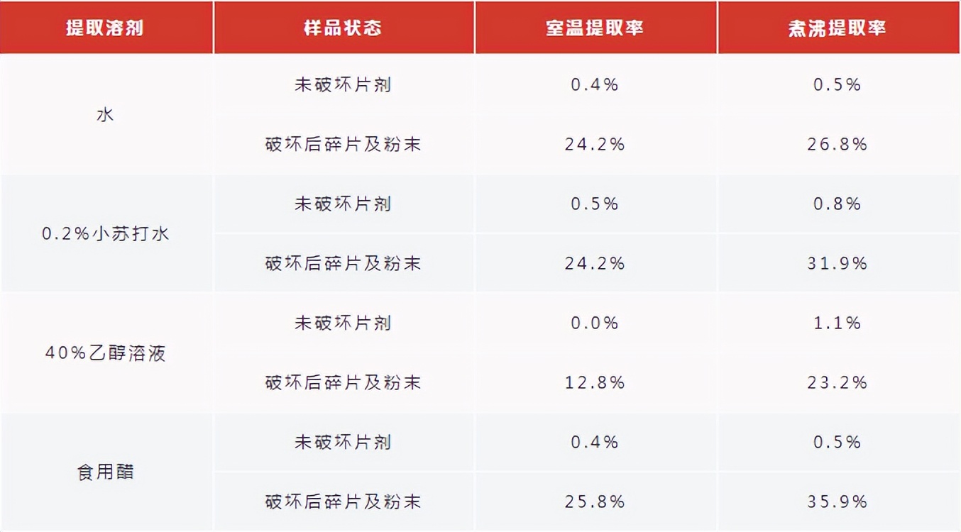 口服渗透泵缓释技术:盐酸氢吗啡酮缓释片通过半透膜实现药物24小时匀速释放,即使药片被强行破坏,活性成分也难以快速溶出。完整药片在各种溶剂中的提取率极低(<1%),即使药品被破坏,提取率也远低于速释制剂(通常>80%)。(见表1)