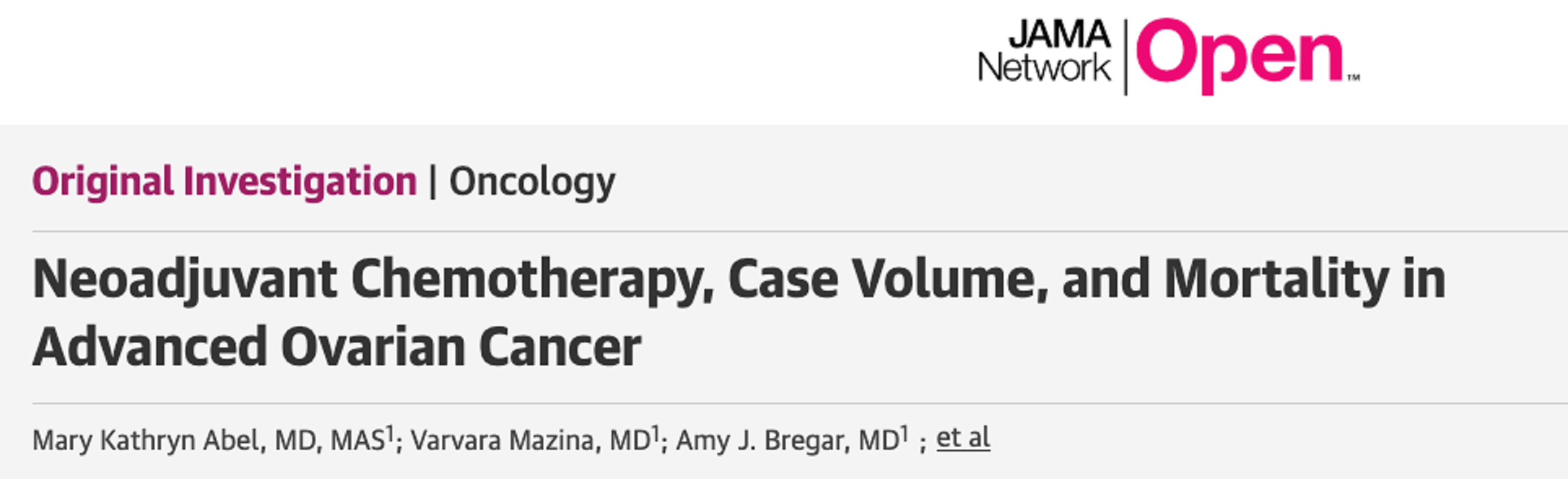 编者按:近期,美国麻省总医院的研究人员探索了晚期卵巢癌患者中,新辅助化疗使用率及医院手术量与肿瘤细胞减灭术后的死亡率和生存期的关系。该研究发表于JAMA Network Open(图1)。本文特整理研究主要内容,以期为我国妇科肿瘤临床工作者提供参考。