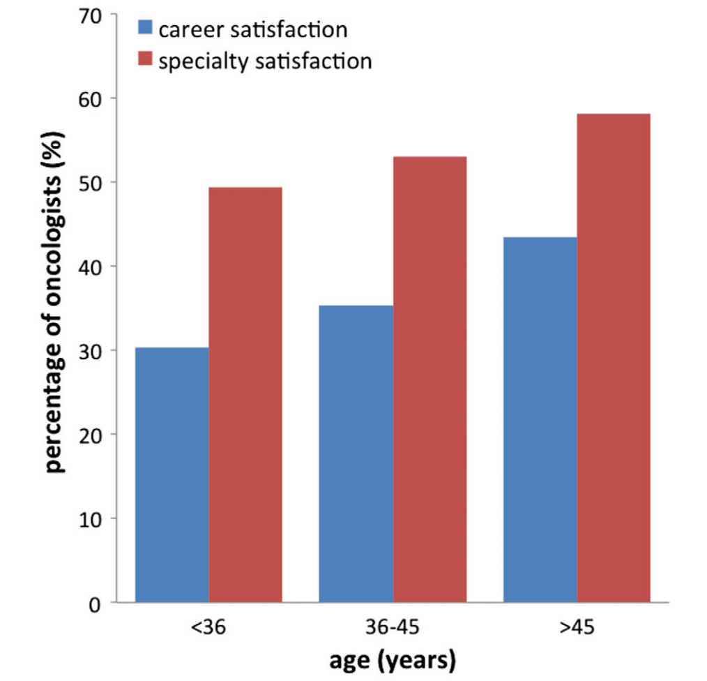 △不同年龄肿瘤科医生的职业满意度