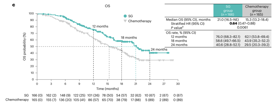 EVER-132-002研究中国大陆人群数据显示[3]:90%存在基线内脏转移,约43%的患者为CDK4/6i经治,约56%的患者在转移阶段既往接受过2线化疗。中位随访13.6个月,SG组较TPC组明显改善了BICR评估的mPFS,分别为5.5个月vs 4.1个月,HR 0.622(95%CI:0.457-0.846);mOS分别为20.5个月vs 15.1个月,HR 0.583(95%CI:0.401-0.847),SG在中国大陆患者中的安全性表现也与ITT人群一致,因治疗期间不良事件(TEAEs)停药的比例为3.4%,未见TEAEs相关的死亡事件和新的安全信号。
