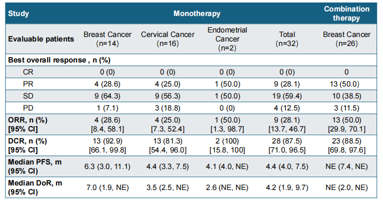 截至2025年5月30日,69例患者被纳入单药治疗研究。其中44例(63.8%)患者存在PIK3CA突变;41例(59.4%)患者既往接受过≥2线治疗。截至2025年8月19日,联合治疗研究入组33例患者,其中30例(90.9%)患者存在PIK3CA突变;22例(66.7%)患者除辅助内分泌治疗外,既往未接受过任何系统性抗肿瘤治疗。此外,两项研究中,均有近50%的患者合并糖尿病或糖尿病前期。
