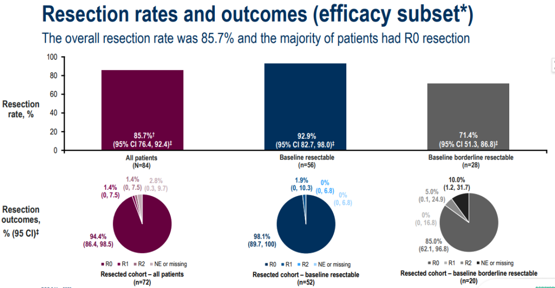 As mentioned,the primary endpoint was the resection rate.This was 86%in the group of patients that underwent surgery,with a very high R0 resection rate of more than 94%.