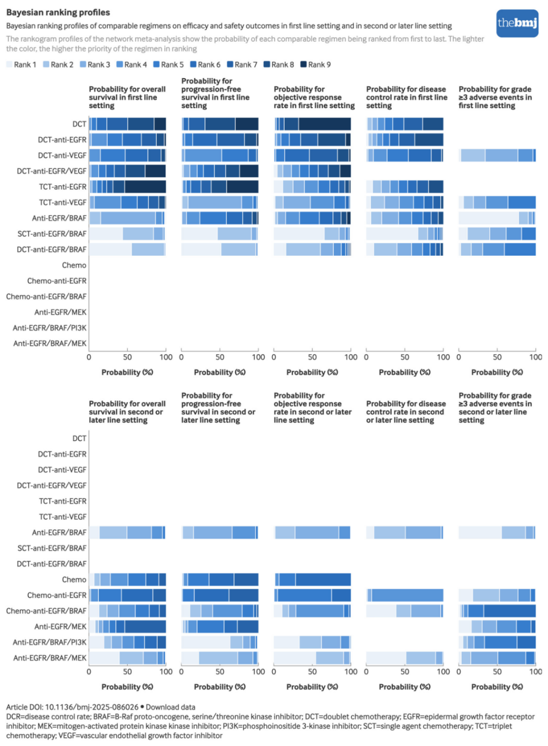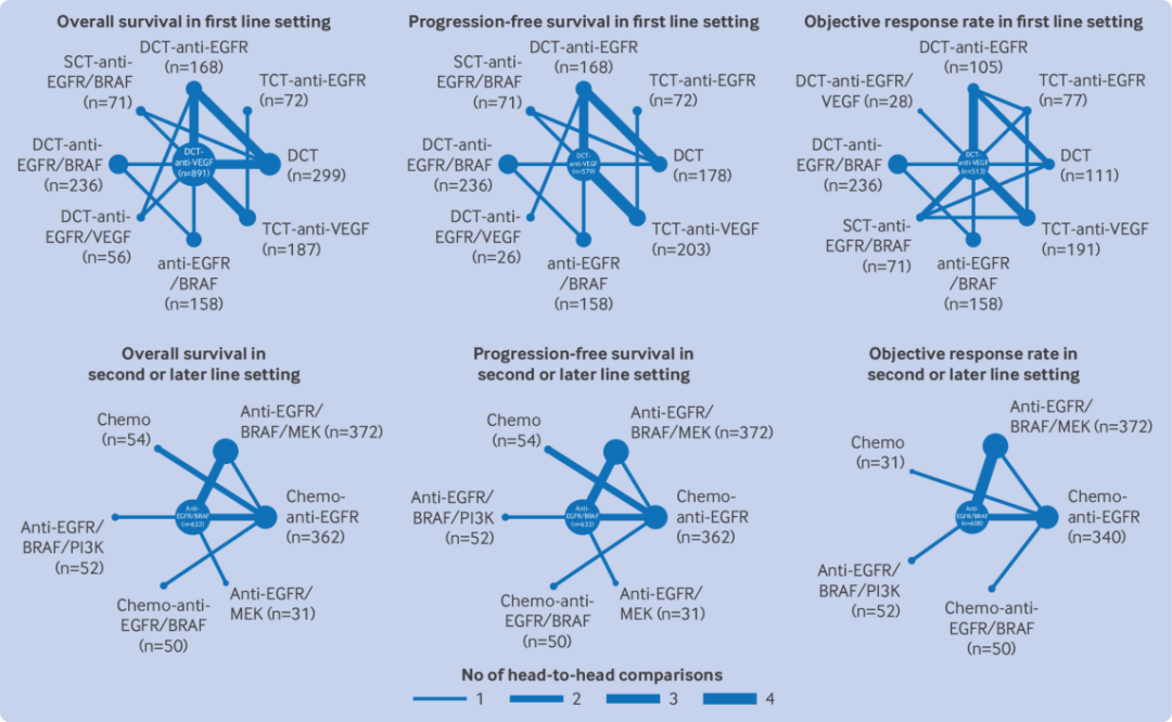 而通过一项研究解决上述问题的有效方法,就是整合所有BRAF突变肠癌研究数据进行网状荟萃分析。而通过一项研究解决上述问题的最佳也是唯一方法,就是整合所有BRAF突变肠癌研究数据进行网状荟萃分析,然而这项工作对数据规模和统计方法都提出了极高要求,同时面临模型架构复杂、统计验证层级多的技术瓶颈。为此,团队构建了目前样本量最大的BRAF突变晚期肠癌研究队列(涵盖4633例患者),创新性地采用三重研究模型——单臂荟萃分析、直接配对荟萃分析与间接网状荟萃分析相互印证,基于两个关键维度(一线治疗、二线及后线治疗)系统追踪评估五大临床终点(总生存期、无进展生存期、客观缓解率、疾病控制率与3级以上不良事件),全面解析不同治疗方案的疗效与安全性。