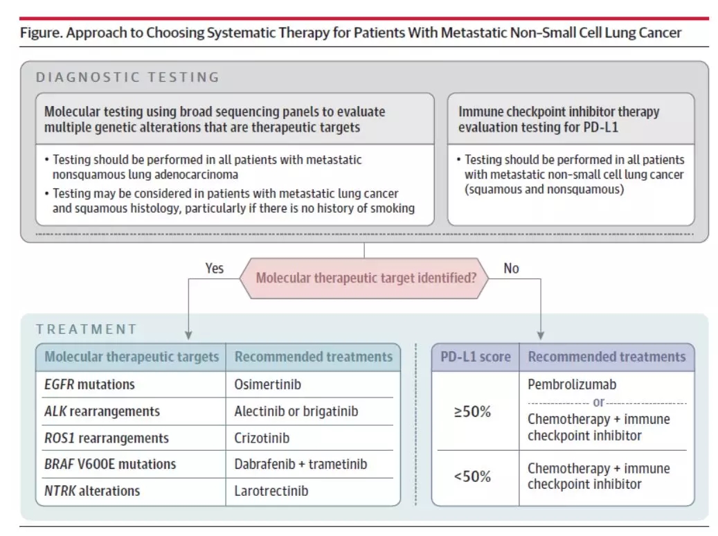 Arbour KC, Riely GJ. Systemic Therapy for Locally Advanced and Metastatic Non-Small Cell Lung Cancer: A Review.  JAMA.2019 Aug 27;322(8):764-774. doi: 10.1001/jama.2019.11058.