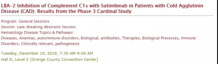 LBA-2:Inhibition of Complement C1s with Sutimlimab in Patients with Cold Agglutinin Disease (CAD): Results from the Phase 3 Cardinal Study