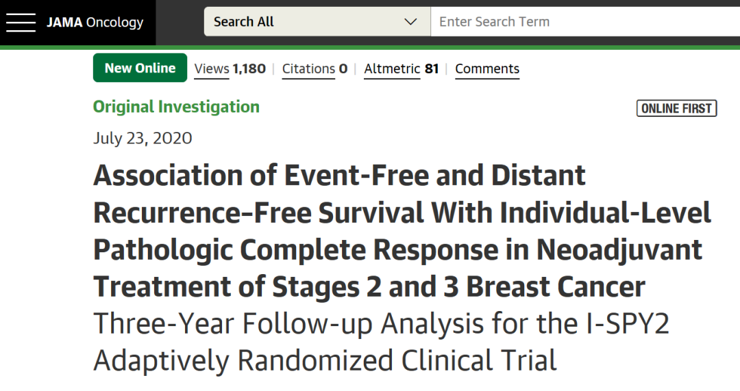 导读:日前,JAMA oncology在线刊载了I-SPY2平台试验的3年随访结果显示,整体人群的pCR率为34.7%,且达到pCR的患者,其复发风险可降低80%。