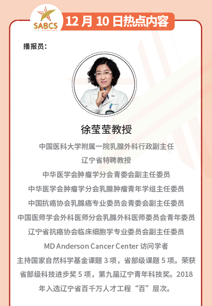 SABCS 5分钟丨第三天播报:徐莹莹教授带您速览化疗及免疫治疗相关内容