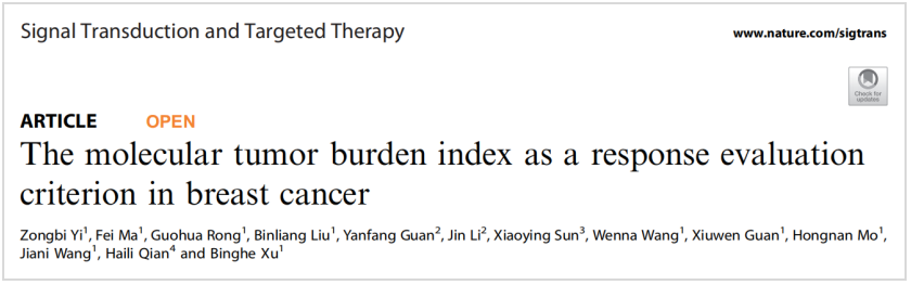 [1]Yi Z, Ma F, Rong G, et al. The molecular tumor burden index as a response evaluation criterion in breast cancer. Signal Transduct Target Ther. 2021;6(1):251. Published 2021 Jul 7. doi:10.1038/s41392-021-00662-9