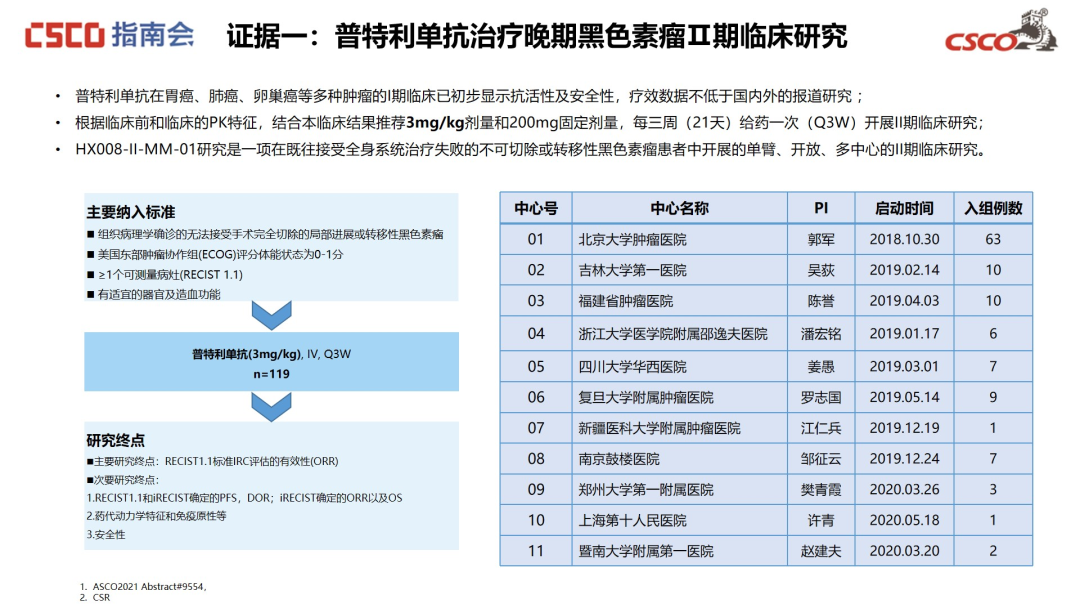 证据一:普特利单抗治疗晚期黑色素瘤Ⅱ期临床研究[1]