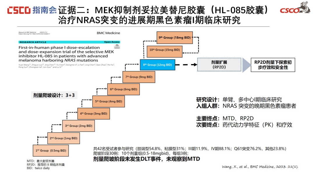 证据二:MEK抑制剂妥拉美替尼胶囊(HL-085)治疗NRAS突变的进展期黑色素瘤Ⅰ期临床研究[2-5]