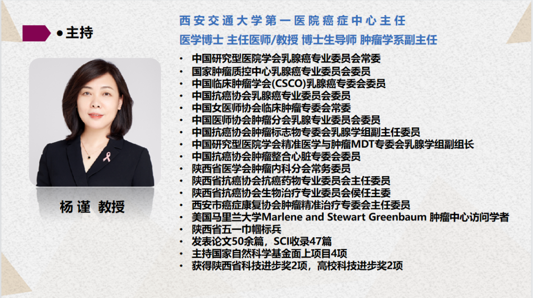 本期《乳腺圆桌派》,我们将邀请西安交通大学第一医院杨谨教授、陆军军医大学西南医院范林军教授、复旦大学附属肿瘤医院陶中华教授、山东省肿瘤医院李慧慧教授共同做客“云诊室”,就一例HR阳性/HER2阴性晚期乳腺癌患者的诊疗过程进行讨论。